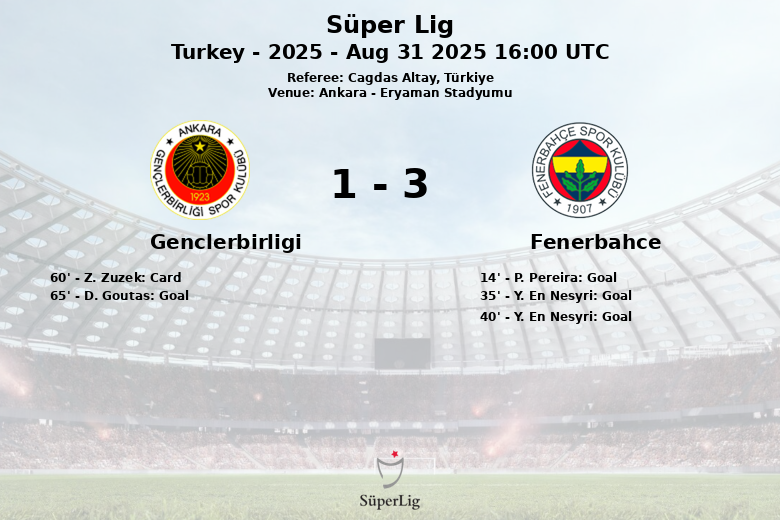 Ankara, Turkey – In a vibrant match held at the Eryaman Stadyumu, Fenerbahce defeated Genclerbirligi in a Süper Lig encounter. Fenerbahce’s dominance, reflected in 61% possession, translated into a victory, although not without facing resistance from a Genclerbirligi that fought until the end.