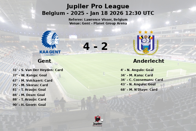 In the second half, Gent took control of the match. Goals from T. Araujo in the 81st minute, M. Dean in the 84th minute, and H. Goore in the 90th minute secured the victory for the home team. Gent demonstrated great effectiveness in attack, capitalizing on their chances and showing superiority in ball possession with 52% compared to Anderlecht’s 48%. Despite Anderlecht’s efforts, Gent managed to impose their game and take all three points in a memorable match. Referee Lawrence Visser had a busy afternoon pointing out fouls and showing yellow cards to players on both teams.