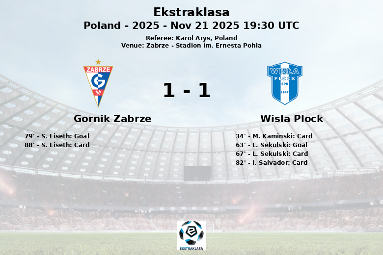 Wisła Płock took the lead in the 63rd minute with a goal by L. Sekulski, assisted by D. Pacheco. However, Górnik Zabrze, spurred on by their home crowd, relentlessly sought the equalizer. It arrived in the 79th minute when S. Liseth, assisted by K. Lukoszek, managed to beat the visiting goalkeeper.