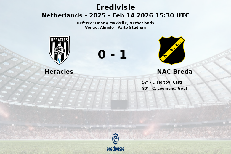 The score remained level until the 80th minute when a foul inside the Heracles area resulted in a penalty for NAC Breda. C. Leemans stepped up to take the spot-kick, sending the ball into the back of the net and giving his team the decisive lead. Despite Heracles’ efforts to equalize, NAC Breda managed to maintain their advantage until the final whistle.