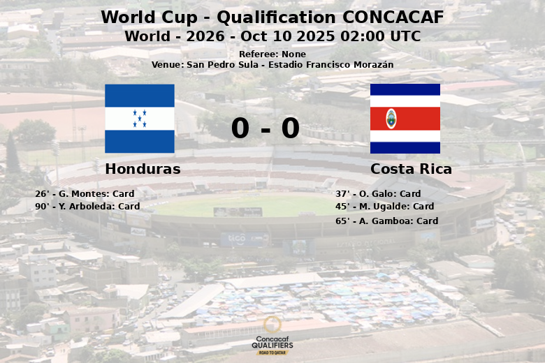 San Pedro Sula, Honduras – In a hard-fought match at the Estadio Francisco Morazán, Honduras and Costa Rica played to a 0-0 draw in the final round of CONCACAF World Cup Qualification for 2026. Honduras dominated possession with 72%, but failed to translate their dominance into goals. The home team generated 11 shots, only one of which was on target, highlighting a lack of precision. Costa Rica, with less possession (28%), focused primarily on defending, recording 5 total shots, with a single shot on goal. The match was marked by a high number of fouls, 17 by Honduras and 16 by Costa Rica, and several yellow cards were issued, two for Honduras and three for Costa Rica. Despite their territorial advantage, Honduras couldn’t break down the Costa Rican defense, leaving the match in a scoreless tie.
