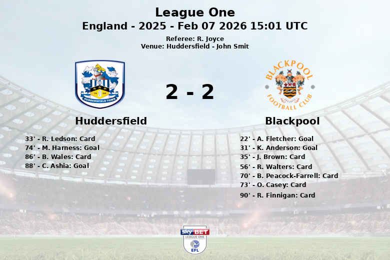 Huddersfield and Blackpool played out an exciting match at the John Smit, ending in a 2-2 draw. The match, corresponding to matchday 31 of League One, was marked by intensity and constant midfield battles.
