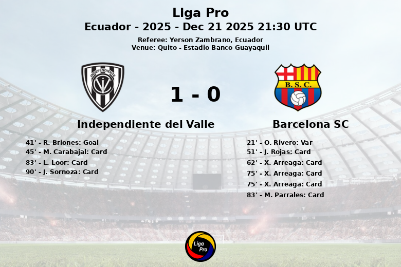 Independiente del Valle vs Barcelona SC Dec 21 2025 21:30 UTC