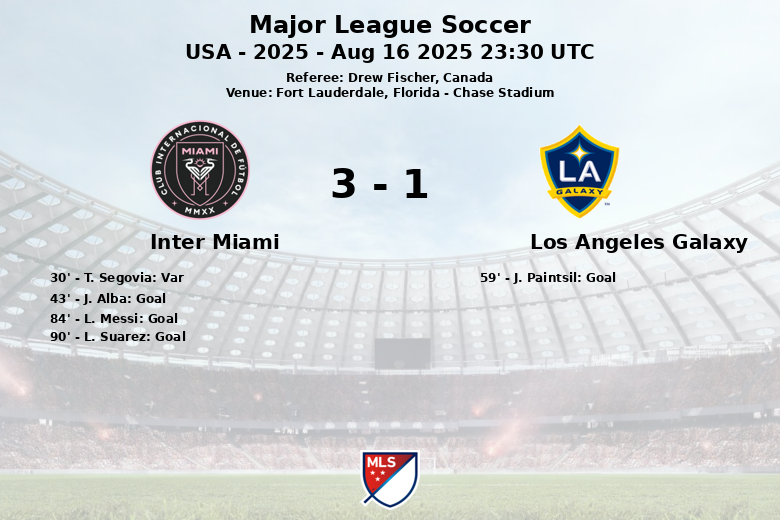 In the second half, Los Angeles Galaxy managed to equalize the score in the 59th minute thanks to a goal from J. Paintsil. However, Inter Miami responded forcefully, regaining the lead in the 84th minute with a goal from Lionel Messi and sealing the game in the 90th minute with a goal from Luis Suárez.