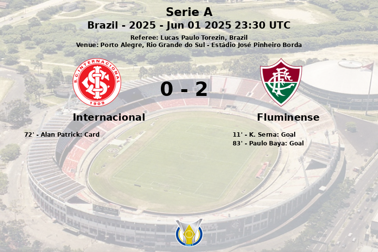 K. Serna opened the scoring for Fluminense in the 11th minute, thanks to a good assist from Samuel Xavier. Internacional sought a reaction and generated a larger number of shots, with 15 attempts in total, of which 4 were on target and 4 went wide. However, the Fluminense defense proved solid and managed to contain the home team’s attacks.