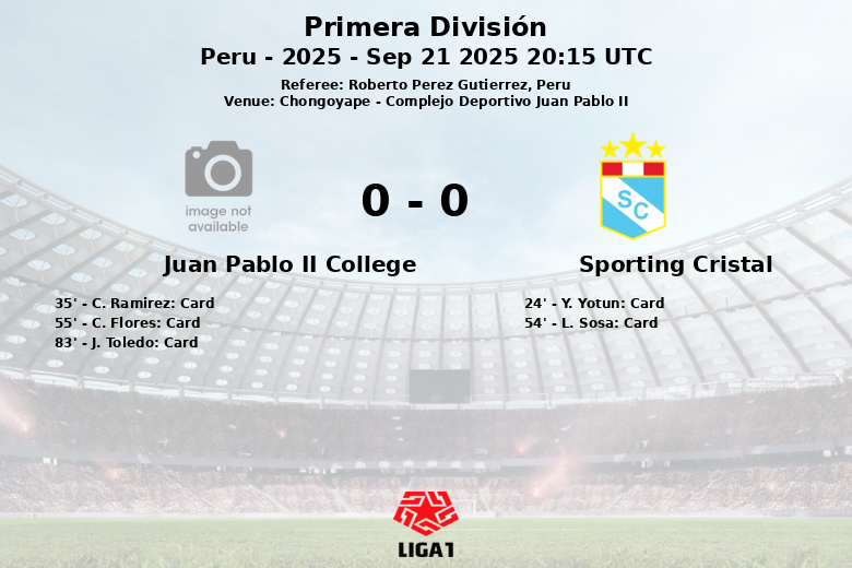 Chongoyape witnessed a hard-fought match between Juan Pablo II College and Sporting Cristal, corresponding to matchday 10 of the Apertura in the Peruvian First Division. The match, played at the Complejo Deportivo Juan Pablo II, ended in a goalless draw.