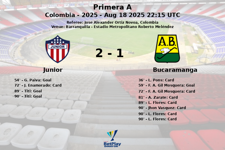 Barranquilla, Colombia – In a match filled with emotion and controversy, Junior and Bucaramanga drew at the Estadio Metropolitano Roberto Meléndez in a match valid for the seventh matchday of the Colombian Primera A Clausura. Referee Jose Alexander Ortiz Novoa had a busy night, showing a total of seven yellow cards and one red card.