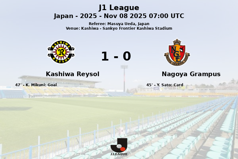 Kashiwa, Japan – In a hard-fought match at the Sankyo Frontier Kashiwa Stadium, Kashiwa Reysol and Nagoya Grampus drew in a game corresponding to matchday 36 of the J1 League. The match, officiated by Masuya Ueda, was marked by an early own goal from K. Mikuni in the 47th minute, giving Kashiwa Reysol the initial lead.
