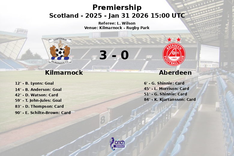 Kilmarnock Overpowers Aberdeen at Rugby Park