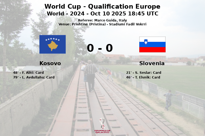Prishtinë (Pristina), October 10, 2025 – Kosovo and Slovenia played to a 0-0 draw in a World Cup European Qualification group stage match at Stadiumi Fadil Vokrri. The match, officiated by Italian referee Marco Guida, was characterized by intensity and midfield battles. Slovenia dominated possession with 62%, attempting to create danger with 11 shots, only two of which were on target. Kosovo, on the other hand, opted for a more direct approach, with 38% possession and 5 shots, none of which tested the goalkeeper. The match was also marked by tough play, evidenced by the two yellow cards received by each team. The game concluded with a sense of equality, reflected in the final score.