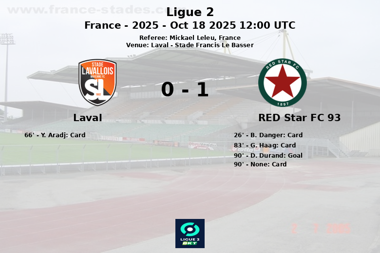 Laval, France – In a hard-fought match at Stade Francis Le Basser, Red Star FC 93 secured a narrow victory over Laval in matchday 10 of Ligue 2. The game, characterized by slightly more possession for Red Star FC 93 (54% versus Laval’s 46%), remained goalless until the final regulation minute.