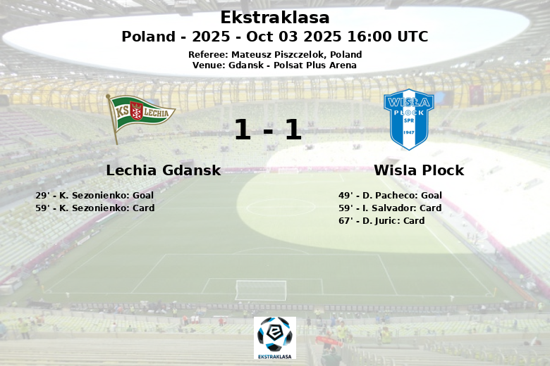 Gdansk, Poland – In a hard-fought match at the Polsat Plus Arena, Lechia Gdansk and Wisla Plock drew 1-1 on matchday 11 of the Ekstraklasa. The match, officiated by Mateusz Piszczelok, was tactical and featured a lot of midfield duels.