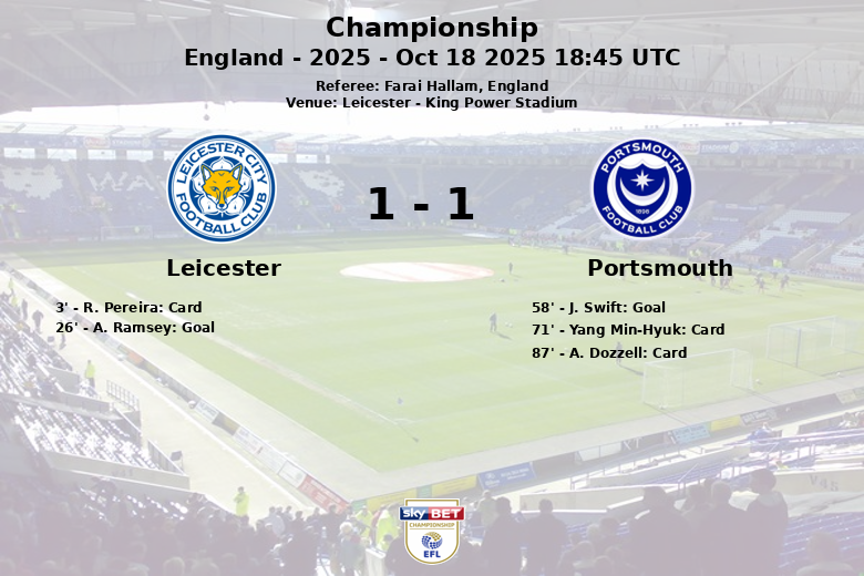 Leicester and Portsmouth played out an exciting draw at the King Power Stadium in a match valid for the tenth round of the Championship. The match, played under the watchful eye of referee Farai Hallam, ended with a score that reflected the parity in the game.