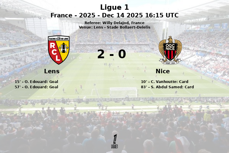 Lens, France – In a match played at the Stade Bollaert-Delelis, Lens defeated Nice with a score of 2 to 0, in a match corresponding to the 16th round of Ligue 1.