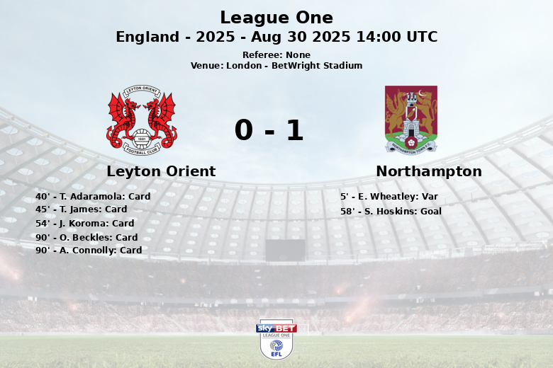 London, England – In a hard-fought match at the BetWright Stadium, Northampton Town secured a 1-0 victory against Leyton Orient in the sixth round of League One.