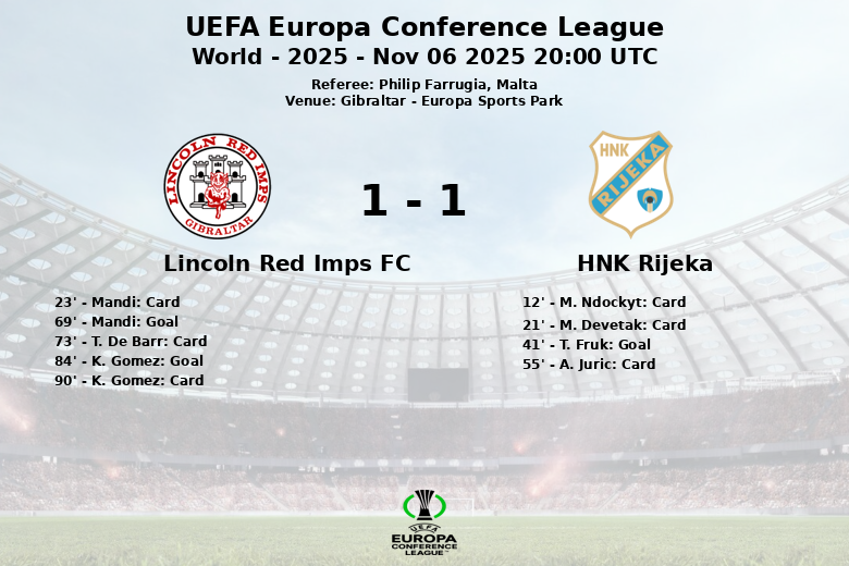 Gibraltar, November 6, 2025 – HNK Rijeka secured a narrow victory on their visit to Europa Sports Park, defeating Lincoln Red Imps FC in a match corresponding to the group stage of the UEFA Europa Conference League. The match, refereed by Malta’s Philip Farrugia, was marked by intensity and midfield battles.