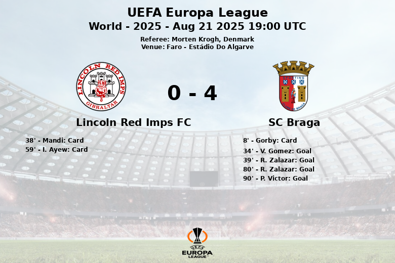 In the second half, although Lincoln Red Imps attempted to react, Braga maintained control. R. Zalazar scored again in the 80th minute, further extending the lead thanks to an assist from L. Lelo. Finally, P. Victor sealed the victory in the 90th minute with a goal assisted by G. Martinez.