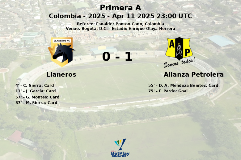 Alianza Petrolera secured a narrow 1-0 victory over Llaneros at Bogotá’s Estadio Enrique Olaya Herrera in a match characterized by tension and a high card count. The Primera A Apertura round 13 game, played on April 11th, 2025, saw eight yellow cards issued. Llaneros enjoyed 51% possession and managed 15 shots, only two of which were on target. Alianza Petrolera, despite having less possession (49%), proved more clinical, scoring the decisive goal in the 75th minute through F. Pardo, assisted by M. Martinez. The game was a physical affair, with a combined 18 fouls committed (8 by Llaneros and 10 by Alianza Petrolera). Despite Llaneros’ territorial dominance, Alianza Petrolera’s efficiency in front of goal proved the difference. The referee for the match was Esnaider Ponton Cano.