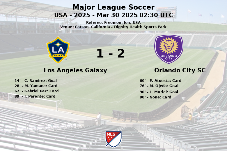 Los Angeles Galaxy and Orlando City SC played an exciting match at Dignity Health Sports Park in Carson, California on March 30th, 2025. The game, corresponding to matchday 9 of the Major League Soccer, ended with a 1-2 scoreline.