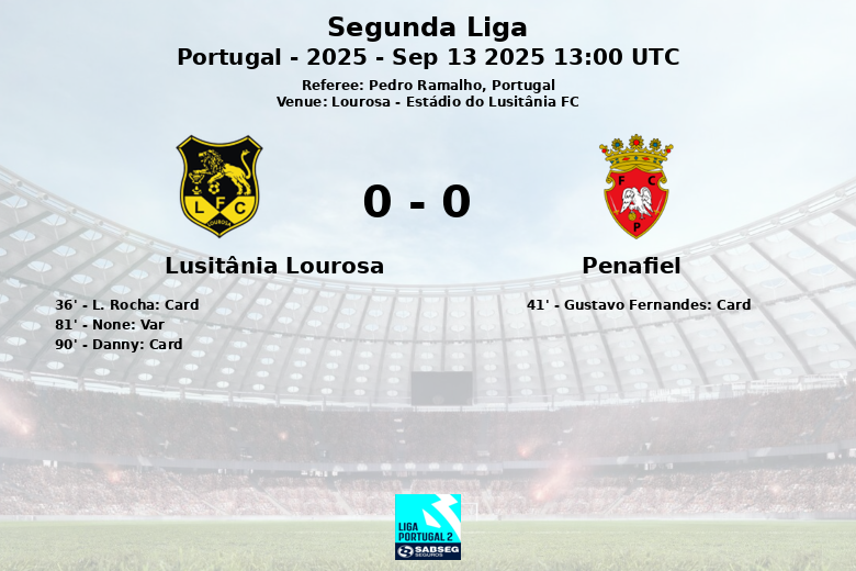 Lourosa, Portugal – The match played today at the Estádio do Lusitânia FC between Lusitânia Lourosa and Penafiel, corresponding to the fifth matchday of the Segunda Liga, ended in a goalless draw. A tense and contested match, where both teams fought to impose their game, but without managing to score.