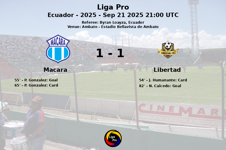 Libertad, despite having less possession (46%), didn’t back down and constantly searched for the opponent’s goal, adding 11 shots. Their persistence paid off in the 82nd minute when N. Caicedo, assisted by O. Quinonez, equalized. The match, refereed by Byran Loayza, was characterized by intensity and contention in every sector of the field. Macará committed 13 fouls and received one yellow card, while Libertad committed 8 fouls and also received one yellow card. Regarding corners, Libertad outnumbered Macará with 11 against 6. The match ended in a draw that reflects the parity between the two teams.