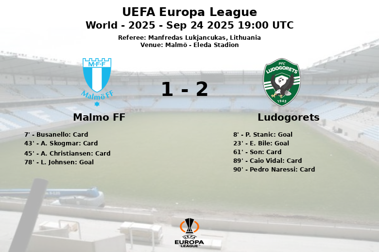 Malmo FF vs Ludogorets Sep 24 2025 19:00 UTC