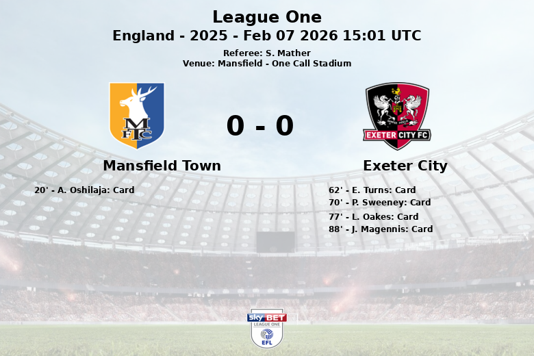 Both teams committed 7 fouls each, reflecting the intensity of the game. Referee S. Mather issued one yellow card to Mansfield Town and three to Exeter City, indicating the disputes for ball control. The match, corresponding to matchday 31 of League One, did not see any red cards. Both teams managed 4 corners.