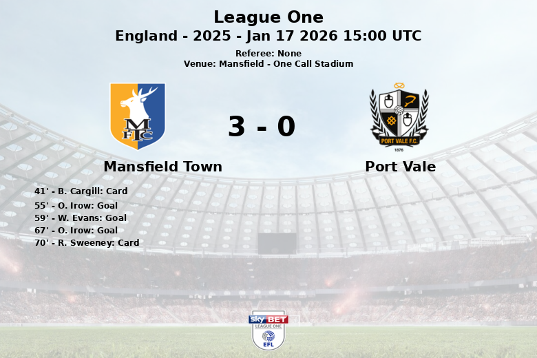 Mansfield, England – In a match played at the One Call Stadium, Mansfield Town overcame Port Vale with a solid performance culminating in a 3 to 0 victory. The game, corresponding to matchday 27 of League One 2025, saw Mansfield take control in the second half, following a goalless first half.