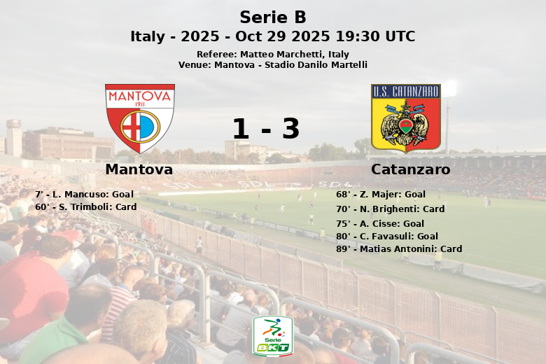 The match started with an early goal from L. Mancuso for Mantova in the 7th minute, giving the home team the initial lead. However, Catanzaro didn’t give up and relentlessly sought the equalizer. The pressure paid off in the 68th minute, when Z. Majer scored an own goal, tying the score. Catanzaro took advantage of the momentum and, in the 75th minute, A. Cisse, assisted by P. Nuamah, made it 1-2. Finally, C. Favasuli sealed the victory for Catanzaro in the 80th minute, establishing the final score of 1-3.