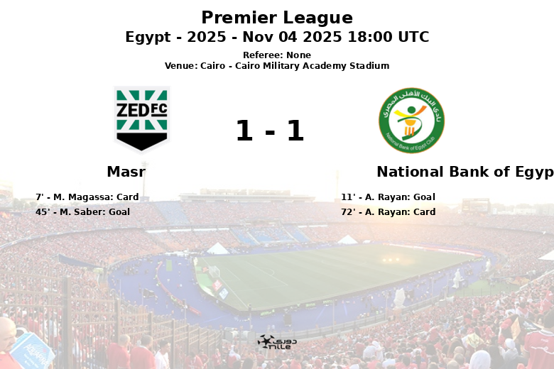 Cairo, Egypt – A hard-fought match at the Cairo Military Academy Stadium ended in a 1-1 draw between Masr and National Bank of Egypt, in the 13th round of the Egyptian Premier League.