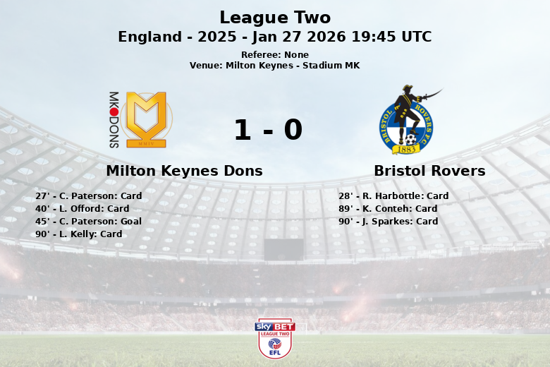 Milton Keynes, England – In a hard-fought match at Stadium MK, Milton Keynes Dons secured an important victory against Bristol Rovers on matchday 29 of League Two. The game, held on January 27, 2026, was characterized by intensity and midfield battles.