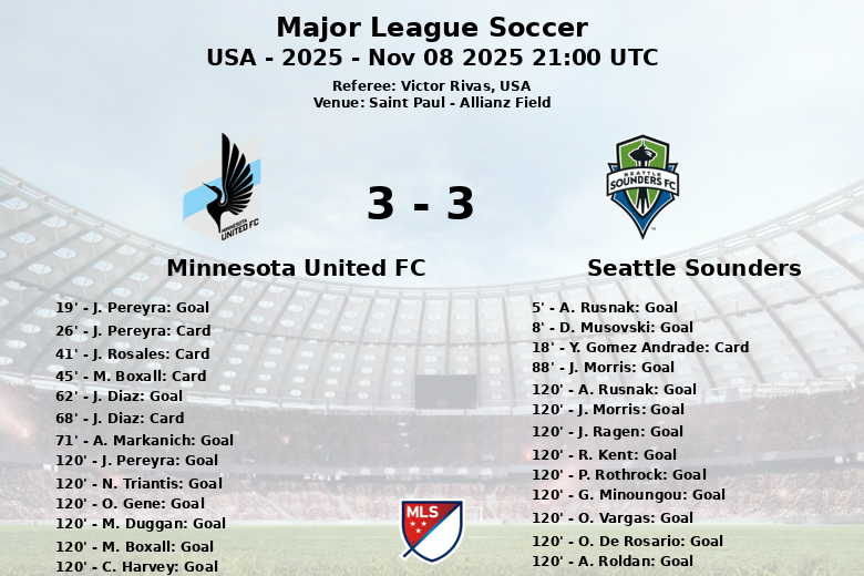 Allianz Field in Saint Paul hosted an electrifying match between Minnesota United FC and Seattle Sounders, in a game valid for the round of 16 of the Major League Soccer. Seattle Sounders emerged victorious after an extensive penalty shootout, following a draw that kept fans on the edge of their seats.
