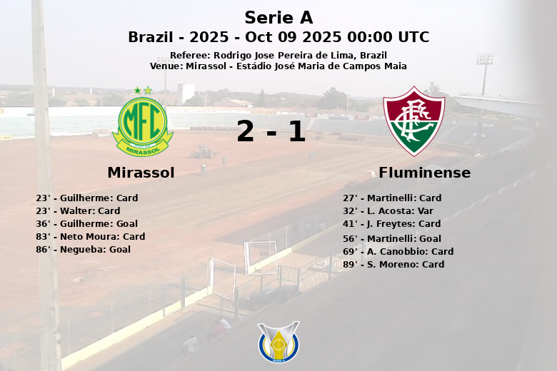 Mirassol, October 9, 2025 – The Estádio José Maria de Campos Maia hosted a vibrant draw between Mirassol and Fluminense on matchday 13 of the Brazilian Serie A. The match, officiated by Rodrigo Jose Pereira de Lima, was characterized by intensity and midfield battles, reflected in the high number of yellow cards shown.