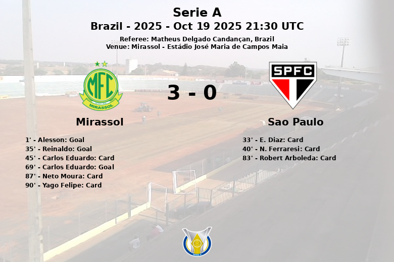 Mirassol, October 19, 2025 – Mirassol convincingly defeated Sao Paulo at the Estádio José Maria de Campos Maia in a match valid for matchday 29 of the Brazilian Serie A. The final score reflected a home team domination, with a result of 3 to 0.