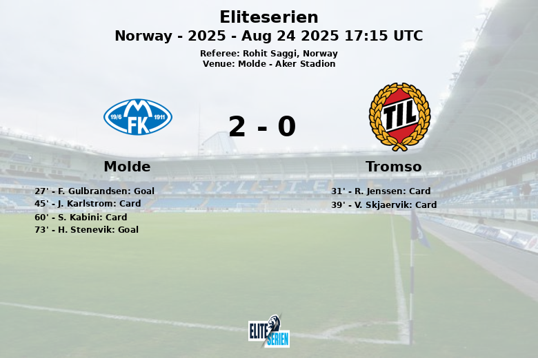 The match was characterized by physical play, with a total of 30 fouls committed between both teams. Referee Rohit Saggi showed two yellow cards to Tromsø players (R. Jenssen in the 31st minute and V. Skjaervik in the 39th minute) and two to Molde players (J. Karlstrom in the 45th minute and S. Kabini in the 60th minute).