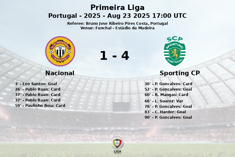 Nacional vs Sporting CP Aug 23 2025 17:00 UTC