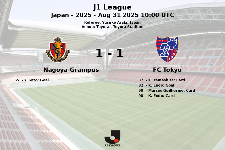 In the second half, Nagoya’s goal seemed to tip the game in their favor. However, FC Tokyo reacted and managed to equalize in the 82nd minute thanks to a goal by K. Endo. In the final minutes, the match heated up, resulting in yellow cards for Marcos Guilherme and K. Endo of FC Tokyo in stoppage time.