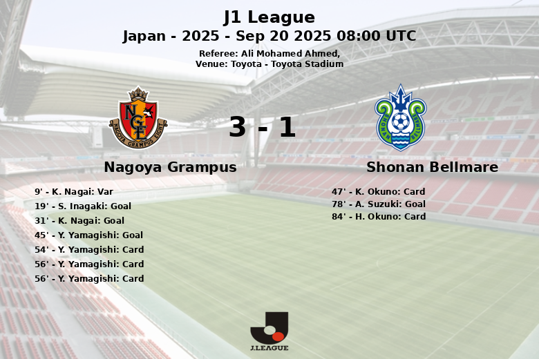 Nagoya Grampus Defeats Shonan Bellmare in Incident-Packed Match