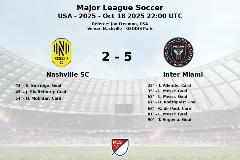 Nashville, USA – In an electrifying match played at GEODIS Park, Inter Miami defeated Nashville SC in a game filled with goals and excitement. Under the watchful eye of referee Jon Freemon, spectators enjoyed a true football spectacle as part of the Major League Soccer regular season.