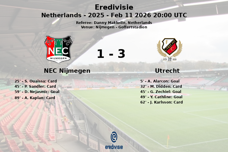 The match was characterized by physical play, with numerous fouls (16 for Utrecht and 6 for NEC Nijmegen) and yellow cards (2 for Utrecht and 3 for NEC Nijmegen). Despite NEC Nijmegen’s territorial dominance, Utrecht’s effectiveness in finishing proved decisive for the final result.