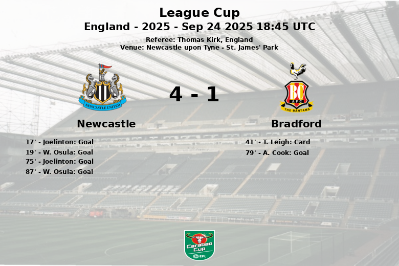 Newcastle Crushes Bradford in League Cup with Dominating Offensive Display
