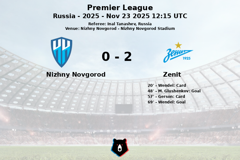 The first half passed without goals, but with a yellow card for Zenit’s Wendel in the 20th minute. The second half saw the opening of the scoring by Zenit’s M. Glushenkov in the 48th minute, thanks to an assist from Luiz Henrique. Zenit extended their lead in the 69th minute with a goal from Wendel. Nizhny Novgorod, although trying to react with 11 shots, only managed to direct three on target. Zenit, for its part, made 8 shots, of which 5 were on target. The refereeing of the match, in charge of Inal Tanashev, showed two yellow cards to Zenit (Wendel and Gerson) and none to Nizhny Novgorod. Zenit accumulated 9 fouls compared to Nizhny Novgorod’s 22.