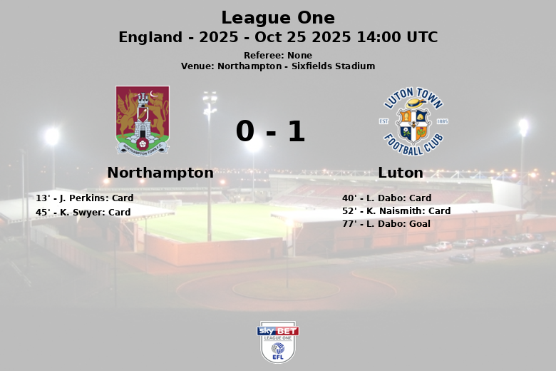 Northampton, England – In a tense encounter filled with yellow cards, Luton Town triumphed over Northampton Town at Sixfields Stadium. Despite Northampton holding 44% of the possession, they failed to convert their opportunities, while Luton capitalized on their attacks more effectively.