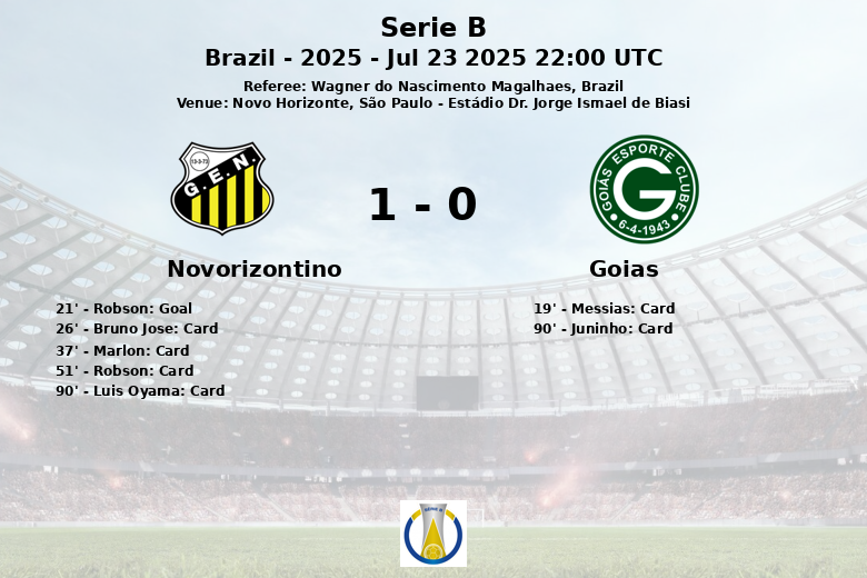 Novo Horizonte, São Paulo – In a Brazilian Serie B fixture, Novorizontino secured a narrow victory against Goiás in a match played at the Estádio Dr. Jorge Ismael de Biasi. The sole goal of the game came early, at the 21st minute, through a penalty converted by Robson, who capitalized on a foul inside the area.