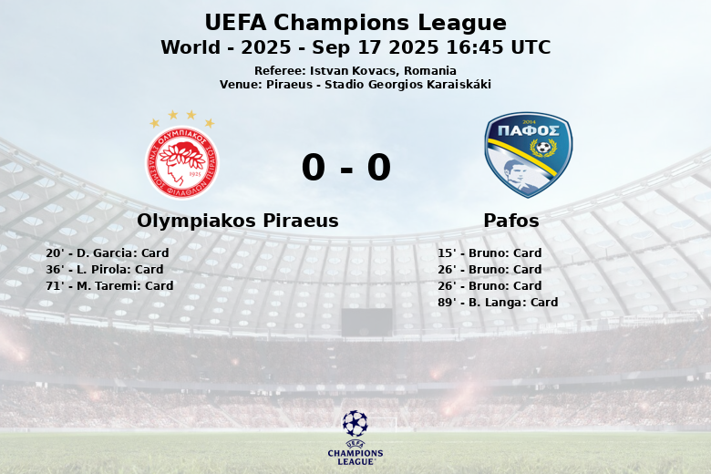 Piraeus, September 17, 2025 – Olympiakos Piraeus triumphed at home against a combative, but ultimately outmatched, Pafos in a match held at the Stadio Georgios Karaiskáki as part of the UEFA Champions League. The home team largely dominated possession with 70% compared to Pafos’s 30%.