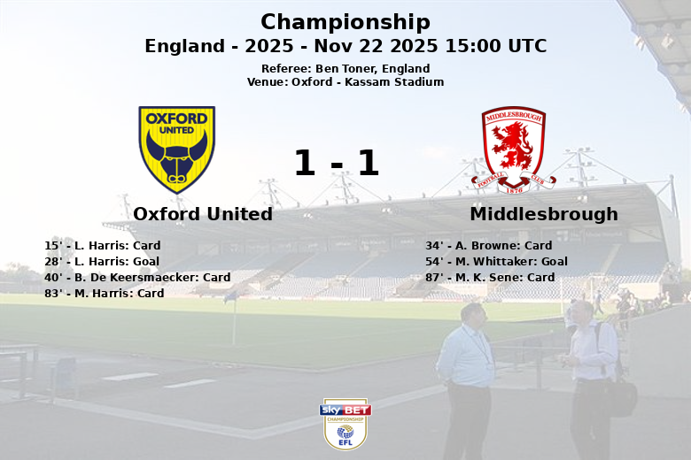 Oxford, England – In a hard-fought match at the Kassam Stadium, Oxford United and Middlesbrough battled to a draw in a game that kept fans on the edge of their seats. The Championship match, corresponding to matchday 16, ended with a score of 1-1, reflecting the constant struggle on the pitch.