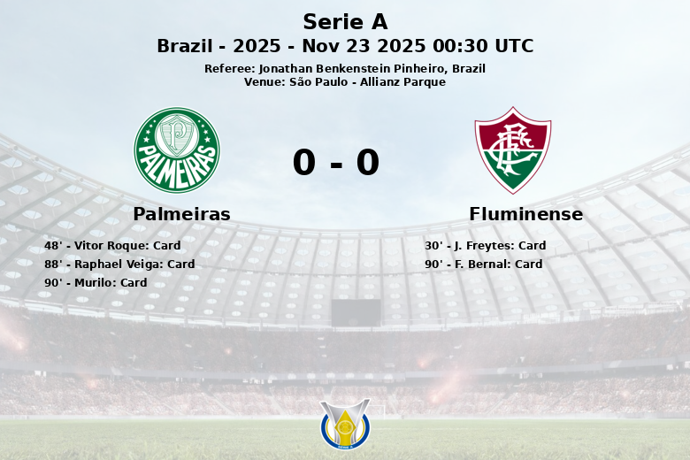 The match was interrupted by a total of 19 cards (4 yellow for Palmeiras and 1 for Fluminense). The first cautioned player was J. Freytes of Fluminense in the 30th minute. The second half was also marked by discipline, with Vitor Roque, Raphael Veiga and Murilo from Palmeiras, and F. Bernal from Fluminense seeing the yellow card. Despite the numerous infractions and the palpable tension on the field, neither team managed to break the deadlock. Palmeiras had 7 corners to Fluminense’s 6.