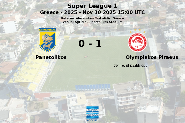 Agrinio witnessed a match dominated by Olympiakos Piraeus, who prevailed over Panetolikos in their own stadium. The encounter, part of the Super League 1’s 12th matchday, saw Olympiakos control 64% of the ball possession and generate a total of 19 shots, although only three of them were on target. Panetolikos, with 36% possession, attempted to create danger with five shots, two of which were directed at the rival goal. The difference on the scoreboard came in the 70th minute, when A. El Kaabi scored for Olympiakos, giving them the decisive lead. Despite Panetolikos’s attempts, Olympiakos maintained defensive solidity and took the three points home. Referee Alexandros Tsakalidis officiated the match without needing to show any cards.