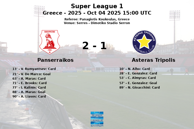 Just when it seemed the match was heading for a draw, A. Maras of Panserraikos scored in the 88th minute, regaining the lead for his team. However, Asteras Tripolis fought until the end and took a valuable point from Serres.