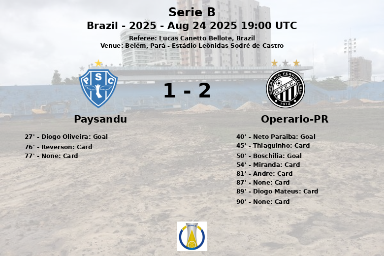 Paysandu vs Operario-PR Aug 24 2025 19:00 UTC